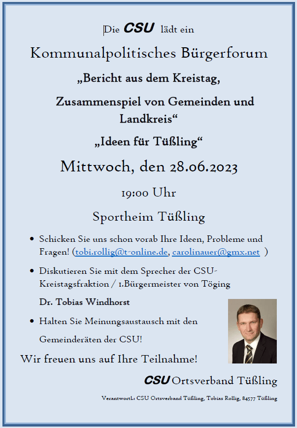 28.06.2023, 19:00 Uhr, Sportheim Tüßling