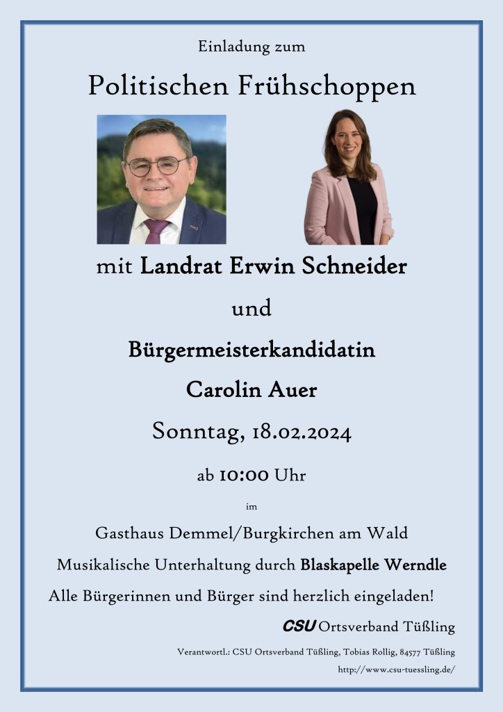 Frühschoppen mit Landrat Erwin Schneider, 10:00 Uhr Gasthaus Demmel