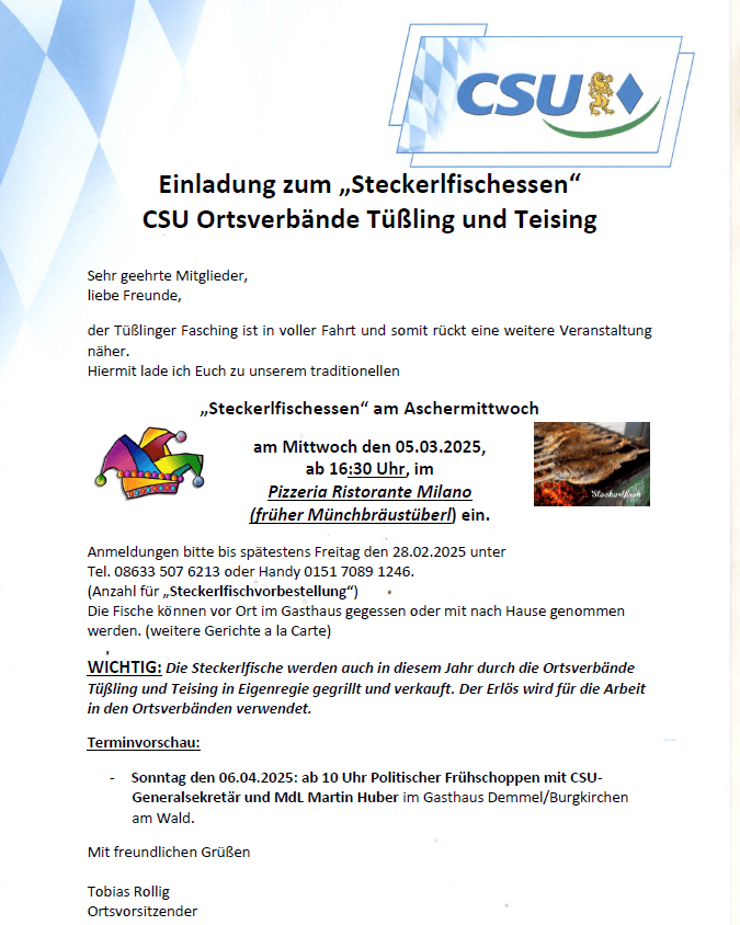 Fischgrillen mit den CSU Ortsverbänden Teising und Tüßling